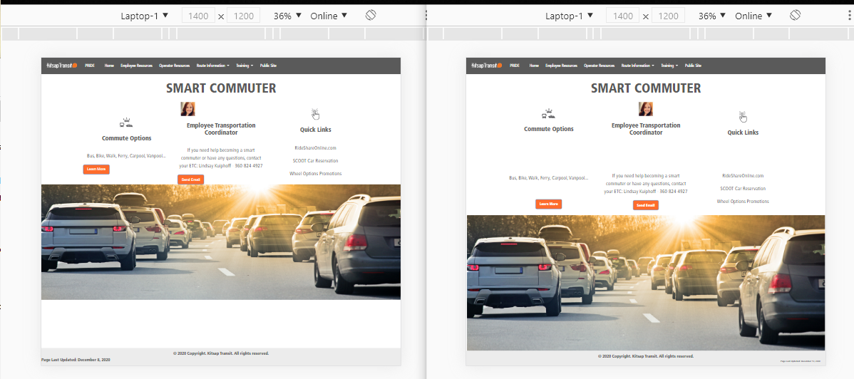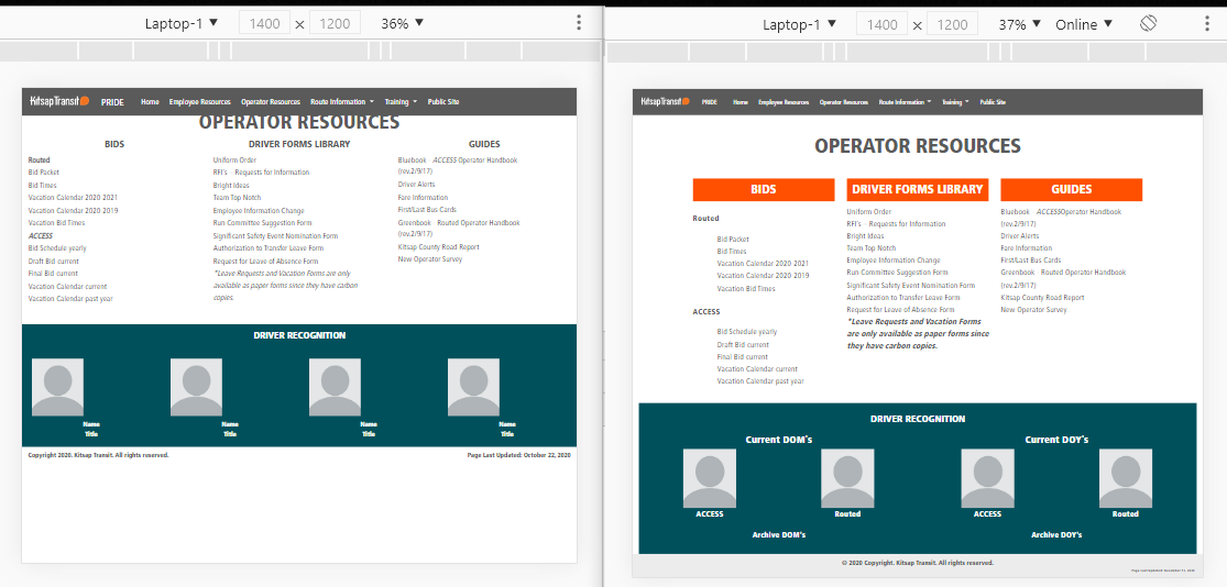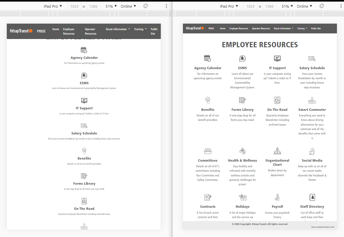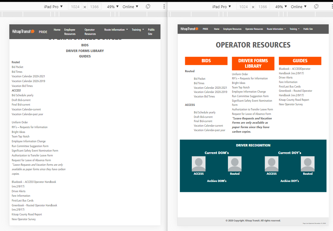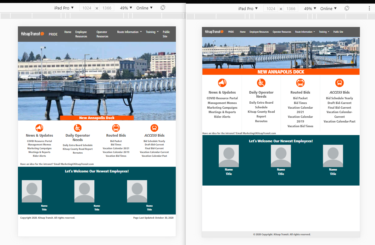 Welcome to "My Latest Work Experience as contract developer -November 2020" for the Kitsap Transit County Intranet website project,