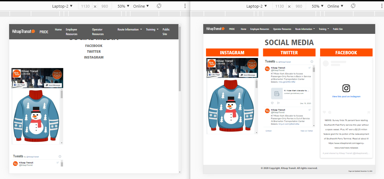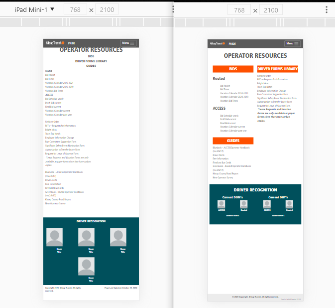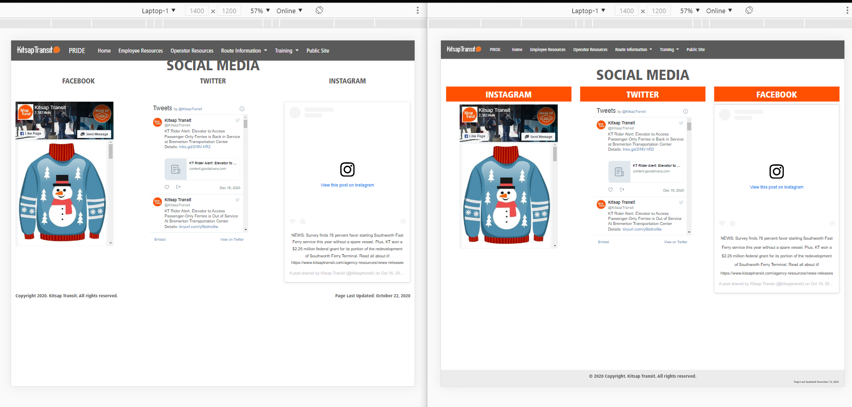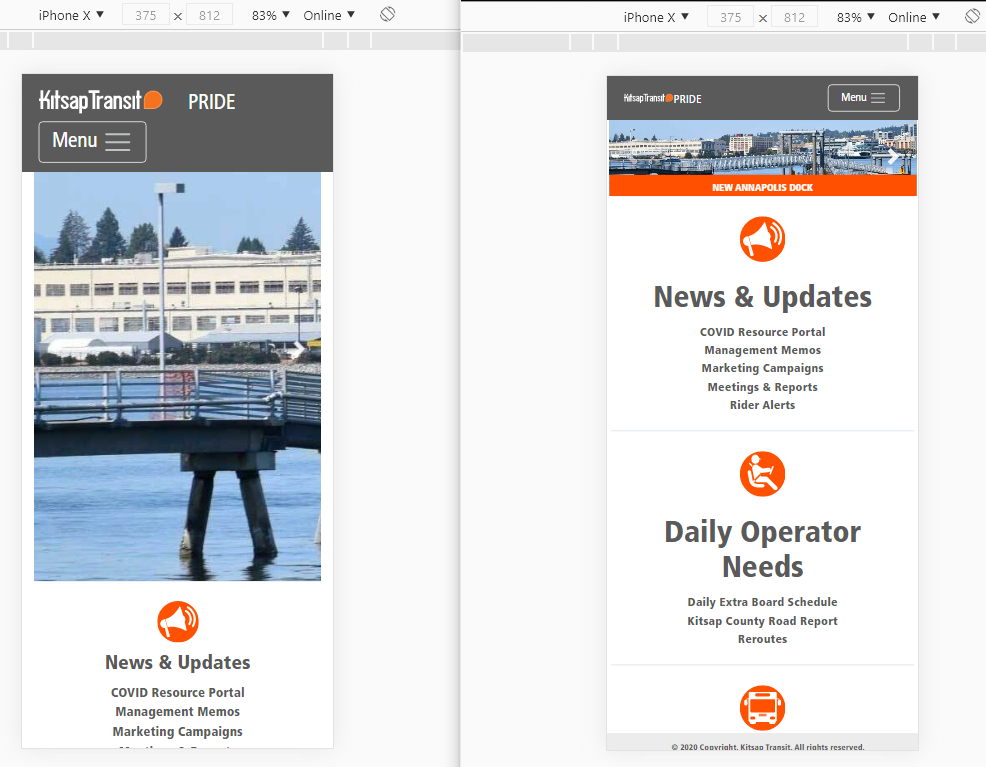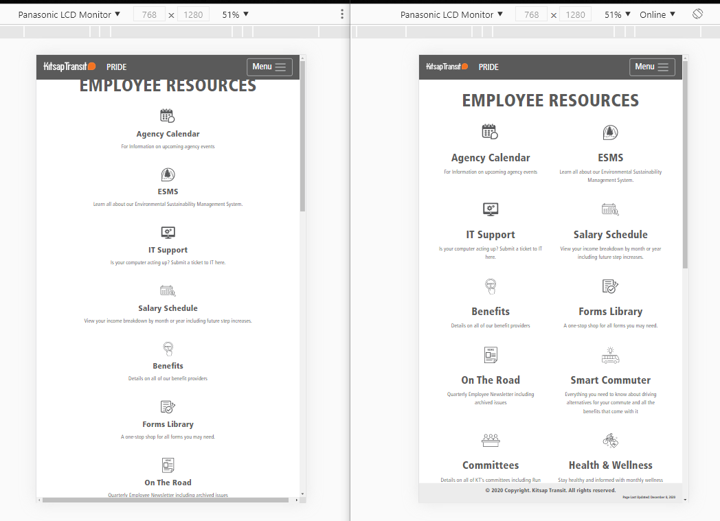 Welcome to "My Latest Work Experience as contract developer -November 2020" for the Kitsap Transit County Intranet website project,