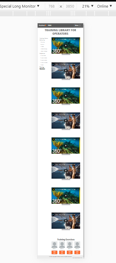 Top Section -Right column: Contains four columns and two rows of eight embeded videos,