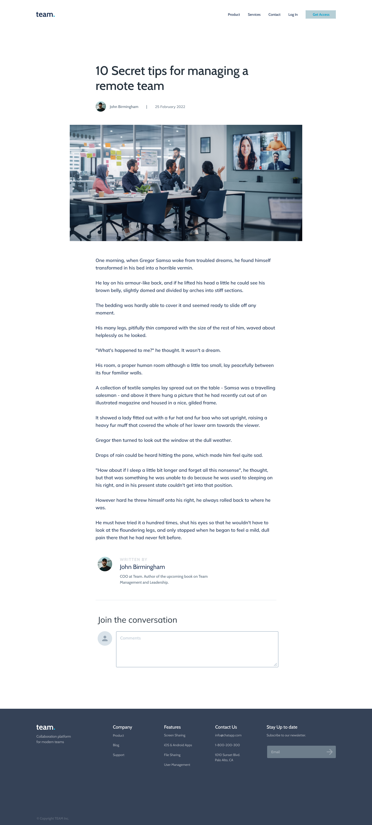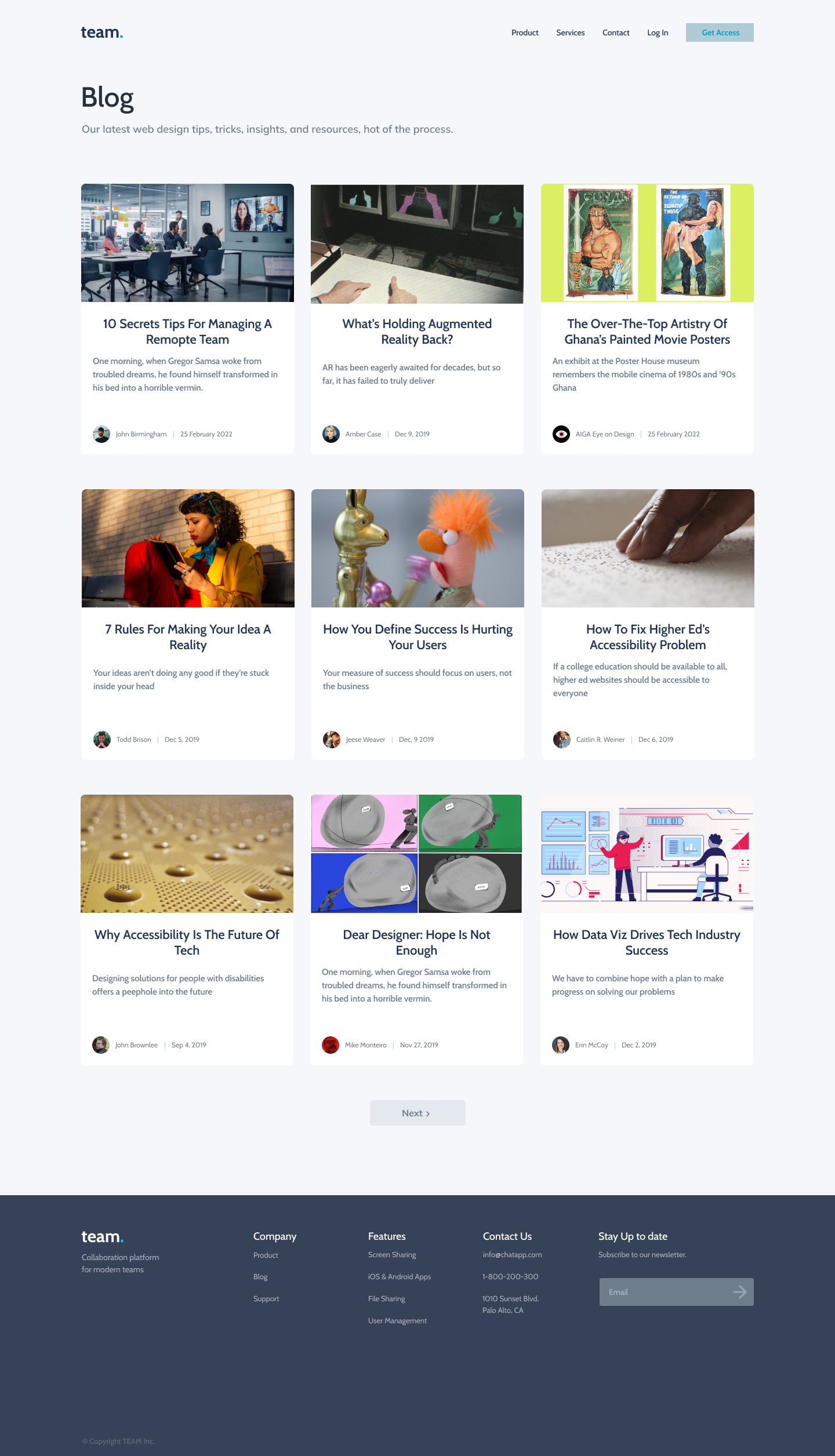 This website shows only the Email & the Get Early Access" usualy known as "Call to Action button", the link to the blog page, and finaly the Post page.